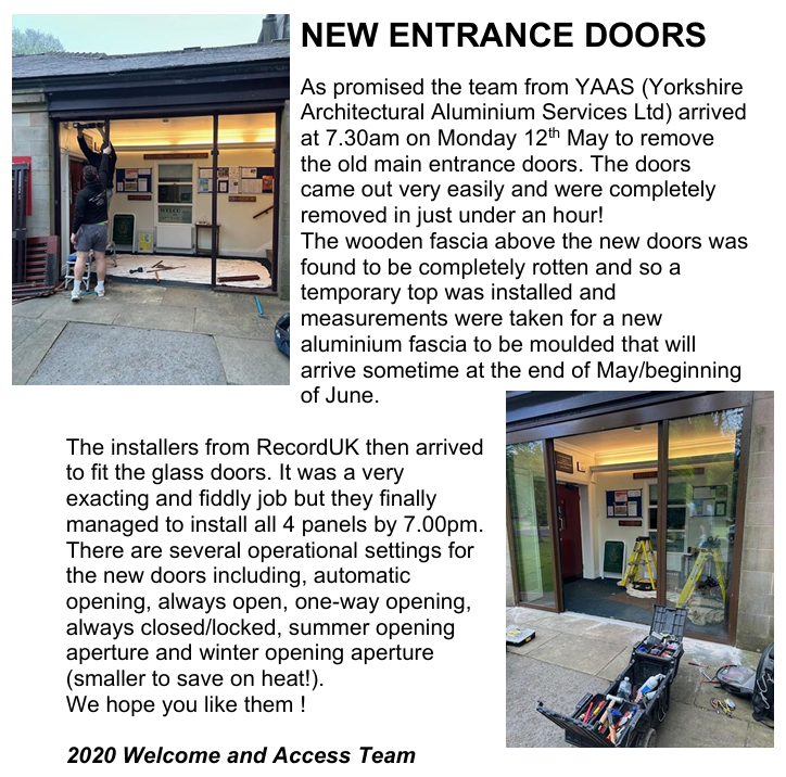 During May 2024 we were excited to see the installation of new entrance doors. Please see further detail below: